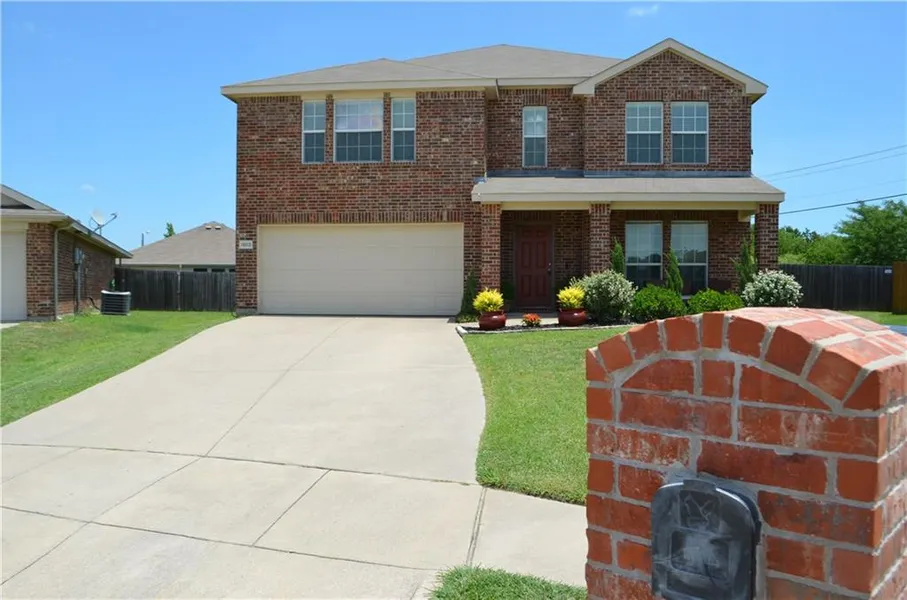 5 BR 2 and a half bath brick home located on a quiet cul de sac. Great curb appeal with gorgeous landscaping, beautiful lawn, and a cozy front porch to welcome friends. Large eat-in kitchen has a breakfast bar, dual sinks, stainless steel dishwasher, and a big pantry. The first-floor living area with dark hardwood floors is open to the kitchen and breakfast room. Entertaining can easily flow to the deck and firepit area in the huge backyard. Master en-suite and 3 other bedrooms are upstairs with a second living area, Jack n Jill bath, and plenty of walk-in closets. Great storage! This home is perfect for a large family or lots of entertaining. Easy access to I-30. Don't miss this gem!