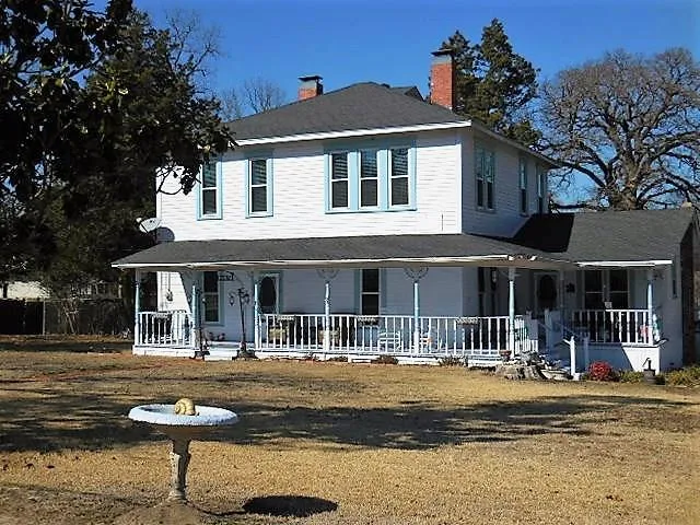 Spectacular Colonial style home built in 1901 (have history of home) with large insulated workshop-garage built by Rafter P, huge old oak trees, wrap around covered porch, wood floors thru-out, Parlor (used as office) with French doors, 3 wood burning fireplaces, modern updated kitchen with granite countertops and huge island & breakfast table all on 2.6 ac with city sewer and city water! So many recent updates, roof, open deck, paint inside and out, spray foam insulation under complete floors of the house, upgrade & leveled foundation, power to 2 RV sites with water and so much more! This house is move-in ready, no TLC or repairs needed to start living the country dream with the amenities of the city nearby