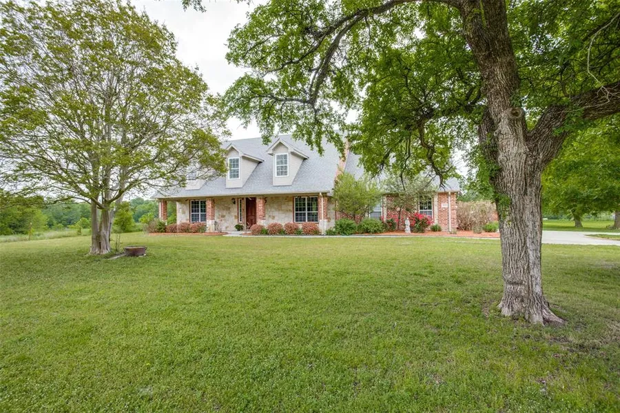PRICE REDUCTION!! WELL-MAINTAINED CUSTOM HOME ON 5 ACRES. 3 b 2 b with an 800 sq ft BONUS ROOM UPSTAIRS wet bar, a half bath, and fresh carpet. Granite countertops tumbled stone backsplash in the kitchen, crown molding, and fresh paint throughout. A spacious utility room with cabinets for storage and extended back and front covered patios for outdoor living. This property also includes a 5 stall barn, tack room, workshop, or office with electricity. NO HOA ALL BUYERS AND BUYERS AGENTS MUST VERIFY ALL INFORMATION