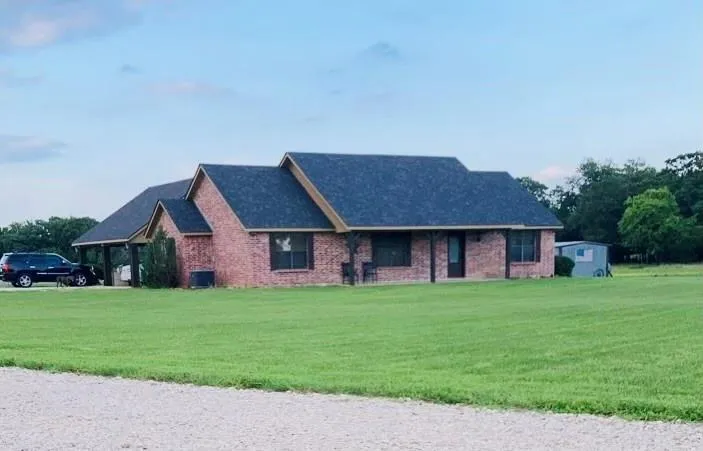 Beautiful Country Home sitting on almost 3.5 acres. This home is located in a very quiet relaxing setting with only a short drive to city connivences. House features an open floorplan, large kitchen island, a breakfast bar, formal dining room, brick fireplace, walk in master closet, new HVAC unit, recently replaced roof and many more custom features. The land has a pipe entrance and provides tons of space for animals or perfect for family to spend their leisure time in. Property also includes a large covered carport and storage buildings. This is a must see!