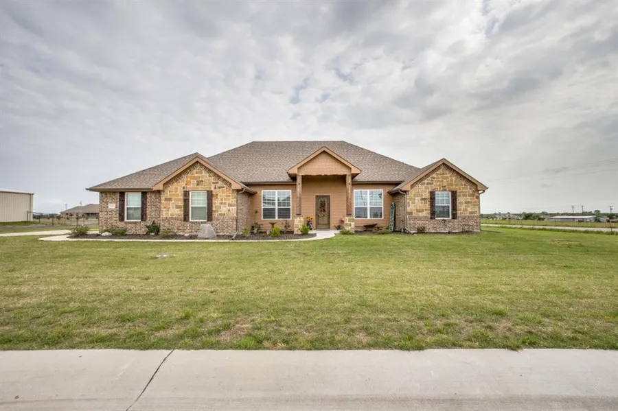 Nestled away on an acre, you'll find this beautiful, custom built home! It's situated on a corner lot, outside of the city limits. This lovely home boasts 4 bedrooms, 2 bathrooms with formal dining. It's beautiful family room offers vaulted ceiling, hardwoods & stone fireplace! Split, open floor plan. Large kitchen with custom cabinetry, granite, stainless appliances with walk in pantry. Master ensuite is spacious with dual sinks, garden tub, separate shower with his and her closets! Enjoy the evening hours on your covered back patio with plenty of space for future swimming pool or metal building! This is a must see & sure to knock your socks off!