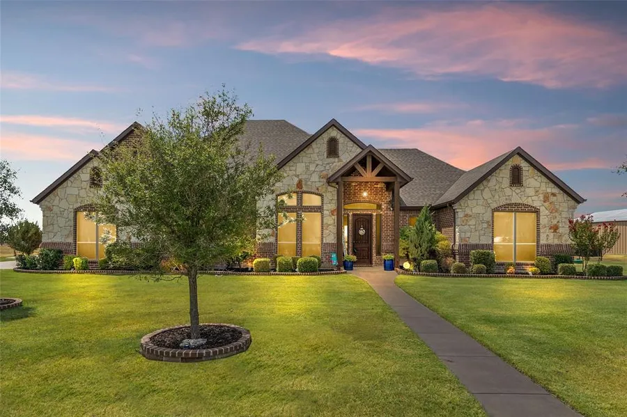 $7,500 in closing costs with acceptable offers! Take a peek at this IMMACULATE, custom built beauty in exemplary Caddo Mills ISD. This lovely home boasts 3 bedrooms, 3.5 bathrooms with a study! The gourmet, eat in kitchen, recently updated offers double islands perfect for the holidays! Drop in electric cooktop with built in stainless oven and microwave, walk in pantry. Kitchen opens to living area and has a gorgeous floor to ceiling stone fireplace with hand scraped hardwoods. Primary is spacious, ensuite has his and her vanities with garden tub & the ultimate spa like shower. Large walk in closet, ensuite connects to laundry room. Jack and Jill secondary bedrooms. Upstairs is perfect for a second living, media room or bedroom and offers a full bathroom! Unwind in your backyard getaway! The charming swimming pool is sure to provide you peace and tranquility with is calming water feature. 30x40 workshop, has electric. 20x12 game house! Tornado shelter in garage. This home has it all!