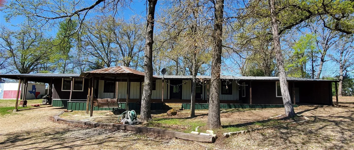 Escape the city life and immerse yourself in the beauty of nature with this captivating rustic retreat. Nestled on a sprawling 2-acres of wooded land, this charming 2 bed 2.5 bath home offers peaceful country living. Step inside and be greeted by the inviting atmosphere of an open-concept interior. The kitchen boasts a gas range, stainless steel appliances including the refrigerator that stays with the house, a deep farm sink, and a walk-in pantry. The massive primary bedroom has a wood-burning stove and plenty of space for an office and room to spare. There is a walk-in closet as well as an additional storage area. The second bedroom is also spacious and has its own full bath. Each bedroom has its own exterior door. Enjoy the beautiful outdoors from your covered porch that spans the front of the house, or cozy up to a fire in the firepit on one of the 3 swinging benches. Conveniently located between I-30 and Lone Oak. Don't miss your chance to make this tranquil retreat your own.