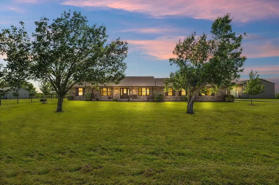 Global Luxury at its finest in Royse City, TX! A pristine 4 bedroom oasis offering million-dollar views, nestled among mature trees on a sprawling estate. Showcasing a rustic, modern open floor plan, this recently updated home blends comfort and style. The interior boasts a wood burning fireplace, large dining and a spacious primary suite and ensuite with spa-like features. Primary ensuite offers dual sinks, garden tub, separate shower and built in blue tooth speaker! The crisp white cabinetry and granite counters elevate your culinary experience. Stepping outside you'll discover a refreshing pool and a covered porch ideal for Texas-sized gatherings. This property also offers a pond, RV hookup and covered parking and a 30x40 workshop. Ag-exempt, inviting your horses and cattle to roam freely. Enjoy peaceful and quiet evenings while marveling at breathtaking sunsets. Don't miss out on this extraordinary property in the Royse City ISD!