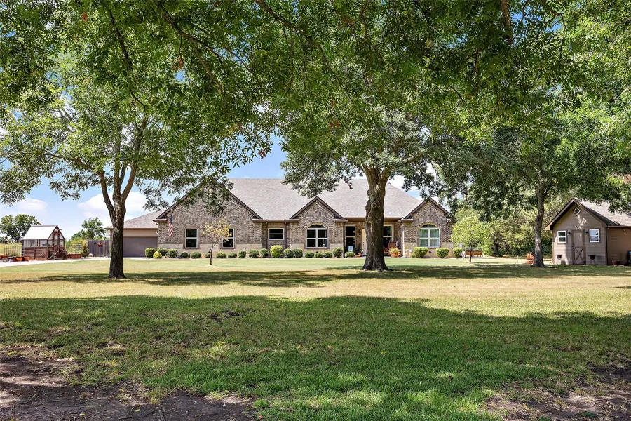 One Owner Home with 2.5 Car Workshop on Acreage where your horse is welcome. Home features a Generac 38 Kw Whole House Generator that is automatic so you are never caught without electricity. Kitchen has granite countertops, breakfast bar, walk in pantry, flat cooktop range and microwave. Master has sitting area, granite countertop bathroom with jetted tub, separate shower, double vanities and walk in closet with built ins. Other features include oversized 2 car garage, 2.5 car epoxy floor workshop with workbench and side porch, granite in all bathrooms, one bedroom could be used as an office as you enter front door, custom built fire pit, pergola, covered patio, engineered hardwood floors, rounded corners, freezer space in utility room, remote shades on back west windows, 8x8 Yoderbilt greenhouse with shelf units, 16x12 storage building, tool shed, aerobic septic system, manual sprinkler system, wood and wrought iron fencing, pecan trees that produce, 4 above ground garden beds & more
