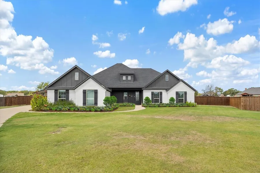 Exquisite Global Luxury Living in Royse City, TX. Discover this stunning estate in the prestigious Royse City ISD, offering 4 spacious bedrooms, 2.5 baths, and a 3-car garage on over an acre of lush, fenced yard. The homes gorgeous curb appeal and meticulous landscaping grab your attention immediately. Step inside to find classy, hand-scraped hardwood flooring throughout. Gourmet eat-in kitchen is a chefs dream, featuring crisp white cabinetry with a rustic touch, large dining area, and a walk-in pantry. Relax in the cozy living room by the decorative, wood-burning fireplace. The primary bedroom is your private retreat with a spacious layout. The ensuite is spa-like with dual sinks, soaking tub, a large shower room and a convenient connected laundry room. Secondary bedrooms are generous in size with walk-in closets, ensuring ample storage. The exterior boasts a covered back patio, perfect for all outdoor activities, and a metal building that provides additional storage and parking.