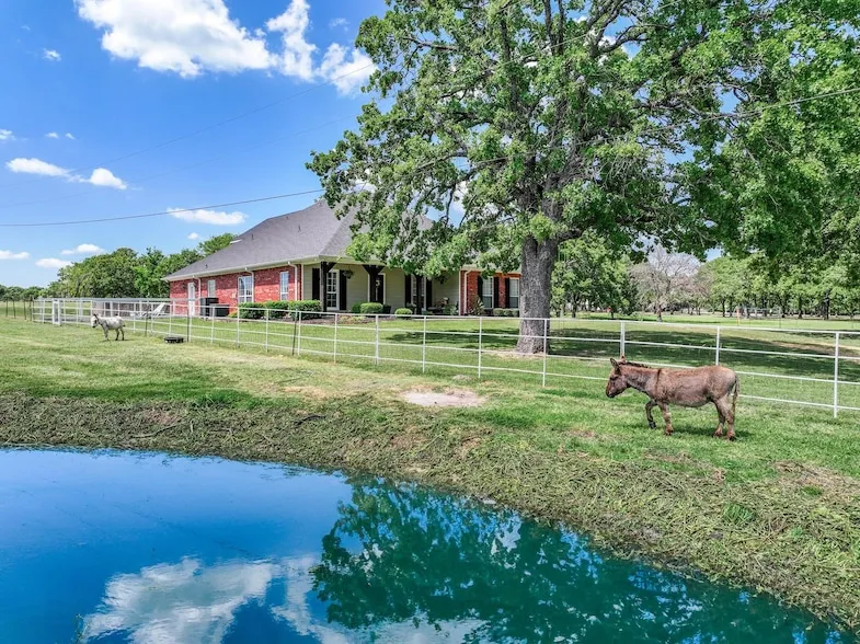 Welcome to charming & sought-after Poetry, TX known for its laid back lifestyle, towering oak trees, & acreage estates. If you want serene country living with nearby shopping and world class lakes, yet under 35 miles SE of downtown Dallas, this is the home for you! Located on 4.55 acres of sandy loam with scattered oaks & pastures, this beautiful custom home is nestled in a stand of mature trees with views in every direction. Enjoy a warm, casually elegant & inviting retreat from big city life, designed to cater to your largest gatherings. The primary suite plus three secondary bedrooms are downstairs, with a 5th bedroom suite & game room up. The primary suite features french doors opening to a private side patio & the ensuite bath boasts travertine tile, double sinks, a soaking tub & a walk-in shower. Notable amenities include stunning luxury plank floors installed in November 2024, new LED lighting & fans, fresh paint inside & out, updated plumbing fixtures, wood burning & stone-accented fireplace, & so much more. The commodious kitchen opens to the Great Room & has a breakfast bar, upscale cabinetry with specialty storage, granite counters, double ovens & a center island. Roof replaced 2022. HVAC & water heaters replaced 2017. Ample fenced pasture with shed for livestock & large pond - 2 acres have Ag Property Tax Exemption. Three porches, brand new cedar balcony & fire pit invite you to relax & take in the views. Abundant deer population. High speed fiber internet available. Very nice above-ground pool conveys - owner will remove upon request. Located with easy access to I-30 and I-20 and points beyond. Don't miss this rare opportunity! Several quality private school options available nearby - ask listing agent for details.
