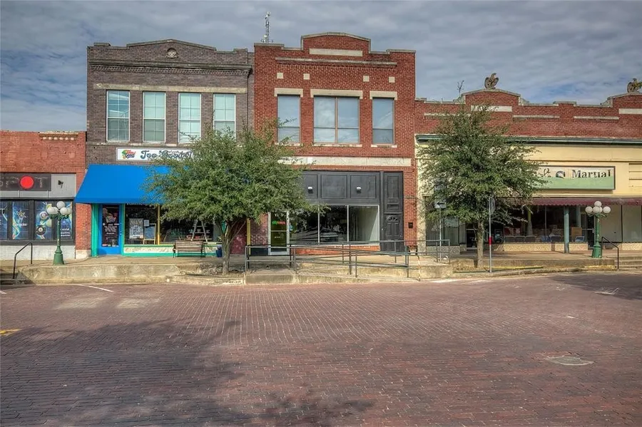 This 1920 building downtown Commerce on the square was remodeled a few years ago. It has 1896 square feet of downstairs commercial space and 1100 square feet upstairs loft style living space. Downstairs the commercial space was previously used as a yogurt shop. The kitchen area has a three compartment sink and a hand washing sink as well as counter space for prepping. Counter with sneeze bar and individual compartments for toppings. Deliveries can be made through double doors via the alley. Mop sink is located in the storage area. One restroom. All commercial equipment can be purchased separately. Upstairs the loft has one bedroom and two full bathrooms. Original hardwood floors were refinished a few years ago. Rooftop covered porch. Entire roof replaced in the last few years with metal. Includes all appliances. Currently rented for $1250 per month.