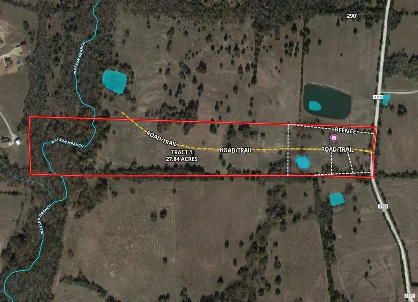 27.84 ACRE PARCEL. Tract 1 may be the most beautiful land near Dallas. Perfect for a homesite or a recreation property. As you enter the gate off the new black top paved county road, you will see a cool old rustic barn on your right and a small pond to your left. Has a dirt road that goes down the middle of the property. A small creek at the rear of the property. Less than a mile from I-30 yet quietly tucked on a country road. 15% down available from local bank. No Mobiles.