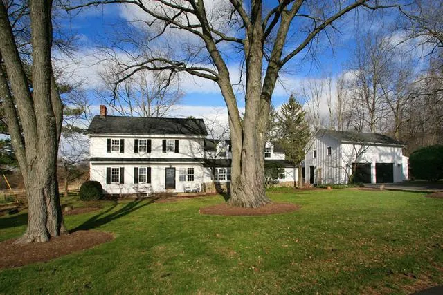 Set at the top of a long private lane, this classic antique farmhouse commands protected, open views across field and pasture, with nary another house in sight. Lovingly maintained and enhanced by the current owners, the delights of this home have grown for almost 300 years, as generations have made changes befitting their needs and aspirations. A light-washed entrance area opens into one of several rooms dressed with exposed beams, the 18th century keeping-room, warmed by a woodstove set in a massive stone walk-in fireplace. The circa1825 addition embraces the more formal part of the house, with entry foyer and elegant living room downstairs, and main suite with its large dressing room, above. The main and two other spacious bedrooms boast north and south vistas and original pumpkin pine floors. Throughout, there are more closets than one expects to find in an antique home, including a large walk-in pantry in the efficiently-designed kitchen. The recently-built addition of generous size, with a bank of north-facing windows, would make an exceptional artists studio. A spacious office/guest suite with kitchenette has been created in the 19th century barn. Spanning a seasonal stream, a bow footbridge leads to the lovely pool and sun-drenched timber-frame pool house surrounded by fieldstone walls and lush perennial gardens, for delightful summer entertaining. Listed in the New Market registered historic district and offering both total privacy and convenience, the property is within an easy drive to major highways. A charming country classic in the Sourland Mountain District!