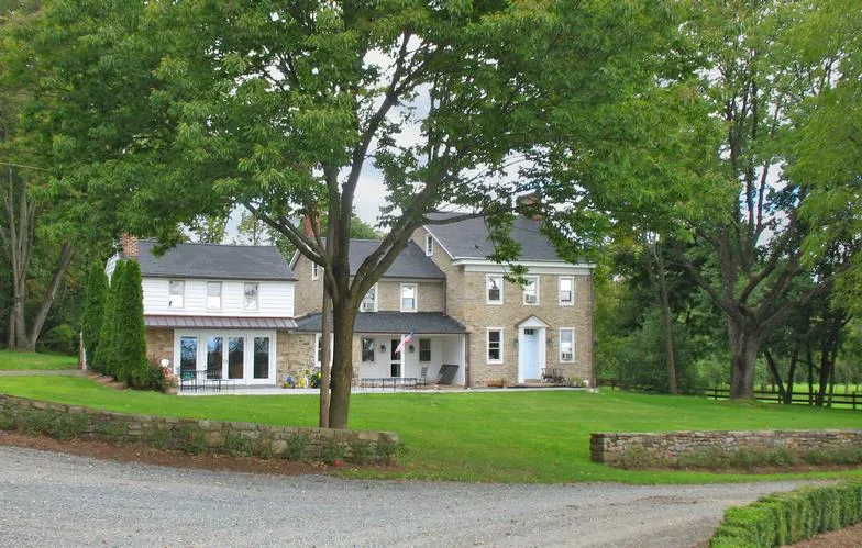 Stunning vistas surround this restored stone farmhouse centered on 25 acres. This stately property evokes classic farm life and is additionally comprised of a lovely three bedroom cottage, a quintessential bank barn, two paddocks with run in sheds totaling ten acres plus three approved building lots. Circa 1740, the main house has pure antique treasures such as beautiful stone fireplaces with hand hewn mantles. The guest cottage is ever inviting with turn-of-the-century wood floors, a sweet fieldstone fireplace and spectacular views of the countryside. The stone bank barn is totally refurbished to authentic standards and has the potential for housing five stalls along with a wonderful open loft space that could accommodate a home occupation suite. The subdivided lots are each over three acres and front Sandbrook Headquarters Road. MDCCXL Farm elegantly blends a peaceful country life with rich and wonderful history.