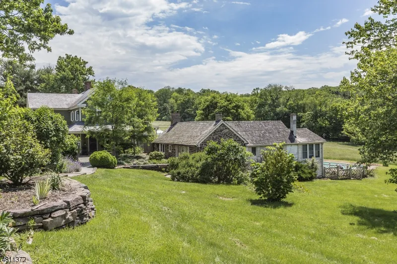 Where the heavens meet Hunterdon County, you will find Cambria Farm. The long drive bisects endless fields and arrives at the pinnacle of the site. The residence sits nestled in the hillside and commands sensational views over the countryside, woodlands & valleys Humble in its easy grace, it invites simple living. The heart of the home is its kitchen with a wall of windows as a backdrop for french terracotta floors that feel like time worn smooth brick, breakfast room and ample counter space. Aged, wide board floors and built ins throughout. Stone guest cottage, pool, 12 stall barn, secondary barn with work shop and 4 bays. A location to take your breath away, this outstanding farmstead is ideal for those seeking serenity, privacy and the beauty of nature.