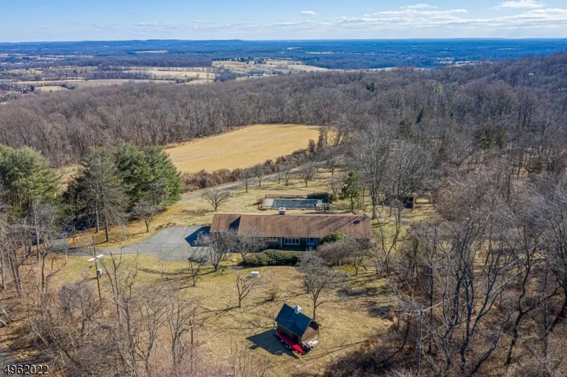 Perfect for primary home or weekend retreat.Beautiful 7+ acre property w unbelievable views! A wall of windows across LR & DR brings the outside in. 2 sided stone FP w heatilator, hrdwd in most rms. Generously sized Master Bedroom commands same awesome view as LR/DR, has full bath. Secondary bedrooms also roomy. Lots of closet space throughout. Large laundry room/mud room opens to outside and to 2 car garage, which has pull down stairs to attic and pull up entry from floor to the partial basement/crawl space. Whole house generator less than 18 months old. Efficient Lennox Hybrid Heater. New gutters. In ground pool area overlooks the far off hills. (Pool not in use) *NEW PRICE*