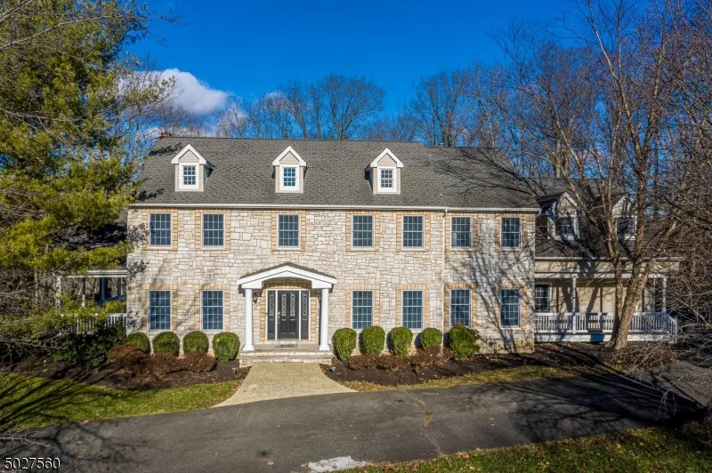 Thoughtfully renovated and redesigned in 2020....custom mouldings, Anderson windows and doors, quality finishes, Bruce hardwood floors on 2 levels, new bathrooms and up-to-the-minute kitchen. A blend of classic shaker-style cabinets and granite tops with sleek subway tile back splash and high-end stainless steel appliances by Viking, Samsung and Bosch make for a beautiful and highly functional kitchen. Large center island with ogee edge granite top and breakfast seating. Convenient buffet with prep sink and pass through to the formal dining room for easy entertaining. Recent redesign created an open living concept to the gathering room with lots of windows.Patio doors and slider open to the mahogany deck, patio and pool area. Take the party outdoors and enjoy seasonal entertaining under the cabana with barbeque and bar seating. On cooler eves head back indoors to sip hot cocoa around a crackling fire from the stacked stone fireplace. Back hall leads to private office, half bath, laundry room and second staircase to bedroom level. Upstairs is the spacious master bedroom with recessed lighting, 2 walk-in closets and luxury bath. Four more bedrooms plus a bonus room adjoining fifth bedroom and two full updated baths complete this level. Additionally: The ready to be finished basement has full bath with steam shower. Circular drive to 3 car garage. Fenced area around heated In-ground pool, cabana, outdoor kitchen. Security System, Nest Heating System, Sentinel HydroSolutions Leak Defense System, Central Vacuum. Handsome stone faade and covered wrap around mahogany porch with paddle fans lures all to linger. Open and lushly wooded 5 acres on cul de sac in distinguished Grist Mill Estates. Lofty trees encompass the backyard offering privacy and quietude. Work from home or if you must commute only 5 minutes to I-78.