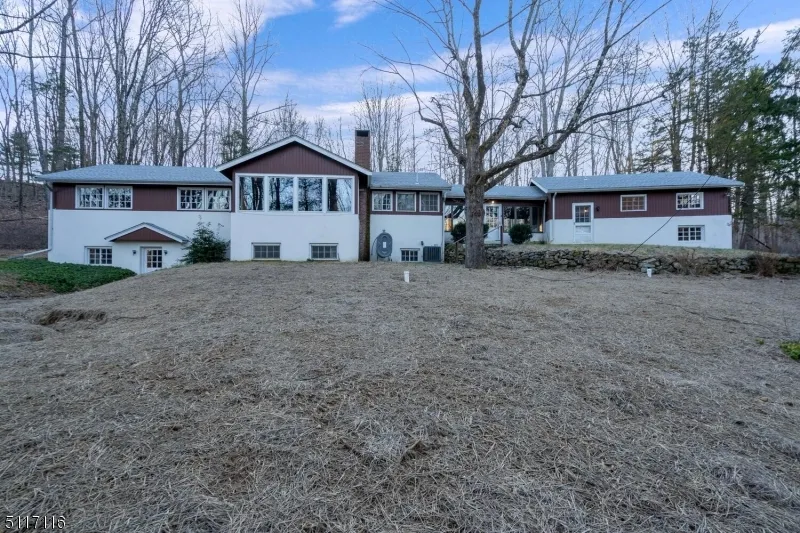 Wooded & private expansive 5 bedroom ranch w/finished basement, renovated EIK featuring s/s appliances including French door refrigerator and glass electric cooktop, natural wood countertops. There are beautiful hardwood floors, knotty pine paneling, exposed wood beams and a wood burning fireplace which shows off the homes rustic charm. The walkout finished basement features a large family room with a wood burning fireplace as well as a large recreation room and a full bathroom. The florida room connects to a separate wing over the garage that includes a den, 2 bdr & full bath which offers the potential in-law suite or office space. There are panoramic views of nearly 8 secluded, wooded acres.