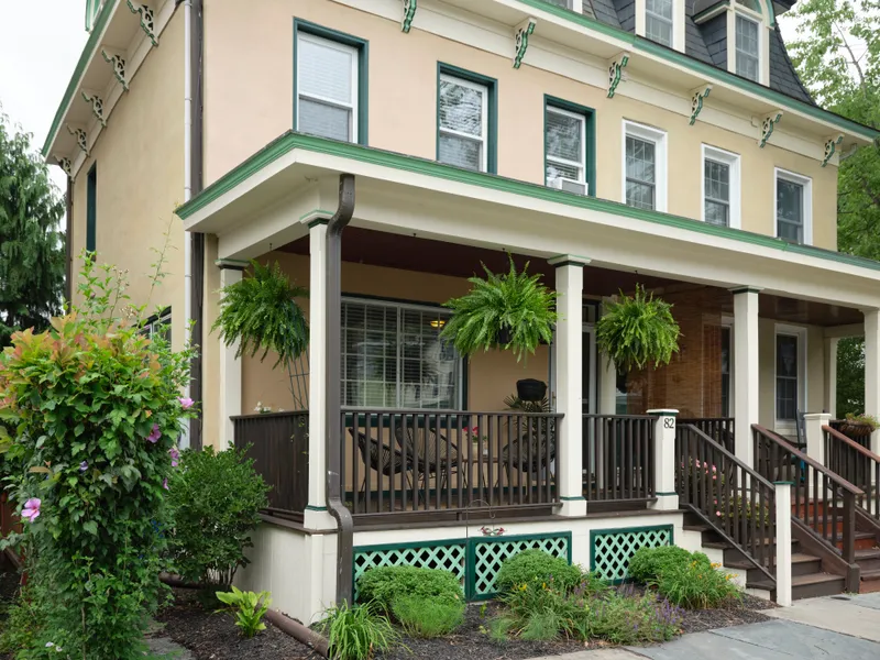 On a quiet street in the heart of the Delaware River Town of Lambertville, find a renovated c.1864 home. A deep rocking-chair front porch provides the perfect place to enjoy a glass of wine and chat with friends. The Main Floor open floor plan is augmented with historic details, crown molding, tray ceilings, and wide-plank hardwood floors. An updated kitchen, with stainless steel appliances and granite counters, leads to a wonderful covered side porch. The charming, private backyard and patios feature unique, varied greenery and offer spaces for dining, lounging and playing outdoors. A lovely fieldstone path conveniently leads to the street. Hardwood floors continue throughout the private living spaces on the 2nd and 3rd floors. The sunny main bedroom offers large windows and an en suite bath. The 2nd bedroom has a private porch overlooking the outdoor space. The family bathroom contains a second floor laundry. A sliding barn door leads up to the finished 3rd floor. A gallery of windows allows natural light to flood the room, making it a great place for an art studio, home office, or 3rd bedroom. The dry basement has poured concrete floors and houses high-end plumbing and HVAC, as well as excellent storage. Walk to restaurants, shops, and events along the Delaware River in Lambertville and New Hope. 1.5 hours from NYC, 1 hour to Philly.