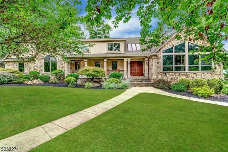 Rare opportunity to have this custom Readington Twp home be yours. Sited on a stunning, private property, the home features 4 BRs, 4 1/2 baths, a large finished WO bsmt & huge pole barn. Sizeable front porch & double front door welcome you into a 2 story foyer & common areas where one will immediately feel at home. Expansive, open floor plan features bright spaces, high ceilings, custom millwork, HW floors, beautiful tilework & plenty of room for all. Country kitchen has large peninsula w/prep sink, granite counters, newer KitchenAid appliances, & an architectural ceiling w/exposed beams. A lovely gathering room w/access to the deck, spacious family room & dining room w/wood burning FP & bay window looking to rear yard complete the main common areas. 1st flr primary en-suite is truly magnificent w/coffered ceiling, sitting room, 2 sided gas FP, WIC & spa-like bath. 2 addtl BRs, powder rm...