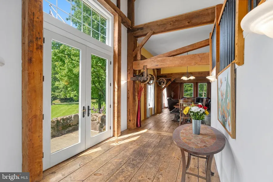 Extraordinary residence where history meets luxury living in the heart of Raritan Township. This magnificent four-bedroom home is a masterful conversion of a historic barn, boasting over two acres of picturesque landscape and timeless charm. Enter inside to discover the beauty of soaring cathedral ceilings, reaching heights of up to 40 feet at their zenith. Every corner of this home is adorned with meticulously repurposed historical treasures, showcasing original barn planks, beams, posts and even authentic barn doors. Immerse yourself in the rich heritage of the past, nostalgia with a touch of rustic elegance to the contemporary comforts of modern living. Recently upgraded with engineered wood siding and a roof replacement in 2023, along with a renovated kitchen, fresh paint and carpeting and a newly paved driveway. This home seamlessly blends its storied past with modern convenience. Designed for maximum energy efficiency and sustainability, this home features radiant floors throughout and structurally insulated R28 panels. Descend into the basement, prepped for finishing where history comes alive in every detail. The walk-out basement not only expands the living space but also offers endless possibilities, fully prepped for gas and bathroom installations. Outside, additional outbuildings including a detached garage and workshop provide ample space for storage, hobbies, or creative pursuits.
