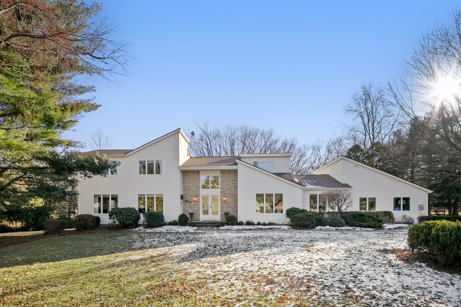 Welcome to a unique, special home, in superior condition, which sits majestically at the end of a Cul de sac. Contemporary on the outside with the interior reflecting a traditional atmosphere. The large foyer with double closets and tumbled Italian marble leads directly to the large living room. A beautiful Stone fireplace adorned with custom-made mantle, vaulted ceiling and slider to the rear patio. The adjacent family room provides a cozy retreat; it, too, has a gas fireplace, brick with its own custom mantle, vaulted ceiling and sliders to patio. The dining room is large, great for entertaining large or intimate gatherings. The recently updated eat in kit is a chef's delight, center island, with white cabinets, brushed gold knobs, Crema Bordeaux granite countertops and tile backsplash a wolf gas stove and Sub Zero, recessed lights and new fixtures '24 The laundry off the kitchen is ne...