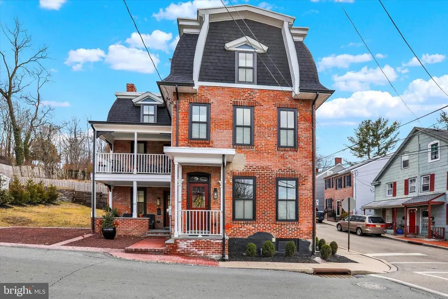 This stately and historic Victorian style residence, built in 1878, underwent a complete restoration in 2023. A new furnace, new electrical and plumbing, and installation of central air and modern black windows updated the home to state-of-the-art comforts, while preserving the dramatic foyer entrance of a sculpted handrail, refinishing all original wide plank wood floors throughout, and exposing and repointing the home's existing brick walls. Sunlight drenches the first floor entertaining rooms with large windows crowned with custom treatments, 9' high ceilings, extra-wide baseboard and crown molding, and both recessed lighting and a mix of traditional and contemporary custom light fixtures. From the foyer and main staircase, pass through a formal living room and dining space to a professional-grade kitchen with custom soft close cabinets, gas range and oven, stainless steel appliances, and quartz countertops with breakfast bar. A spacious and private family room extends off the back of the home with exposed brick wall, half bath, and laundry overlooking the side garden and yard. Or use the kitchen door entrance to access the bluestone half-walled front porch, where you can enjoy the outdoors and wave to a neighbor passing by on their way to town for brunch or for a walk/bike along the nearby D&R canal trail.Wind your way from the kitchen up the secret pie staircase to one of the four bedrooms, all with original and refinished wide plank wood floors, and you can also access a large second floor outdoor balcony that extends over the porch above street level with a view of the trees on the hill. The primary suite on this second floor is bathed with natural light and includes a luxurious primary full bath with deep soaking tub, double sink vanity, stall shower, and custom tile work‹”a perfect evening retreat. As you continue down the hallway to the stairs and ascend to the third floor, you encounter a full 3-piece bath with more exposed brick and then two more guest bedrooms that both share yet another full bath. The rooms have high ceilings, character dormers, wide plank wood floors, large closets, and views that sweep from downtown Lambertville, across the Delaware river, and into New Hope. The uppermost room is quite spacious and thus can be used as a second suite or rec room with sitting area. This complete, elegant package also boasts full basement, new roof (2024), two car off-street parking, and side garden/yard.This home, perched just a few steps above town center at the beginning of the Cottage Hill neighborhood, originally doubled as a corner store of Lambertville, a community with significant historic roots that continues to be a vibrant center today with its shops, arts, bars, and restaurants. Just a short walk brings you to the lively and bustling town of New Hope, Pa. Make this historic home with modern amenities yours and add your own chapter to the story of this nearly 150 year old home.
