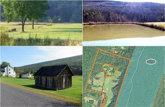 Tract 1: Approximately 60+- Acres bordering State Game Lands 121! Approx. 25+- field acres & 35+- wooded acres; This tract includes a well-maintained Farmhouse w/3 BR, 1 Bath, LR, Sitting Room, Equipped Kitchen, basement, & wood floors; Enjoy the amazing pond & mountain views from your large rear deck! Large Bank Barn & multiple outbuildings in fair condition! Stocked Pond, Trout Stream, & several Fruit Tree complete this Outdoor Retreat!