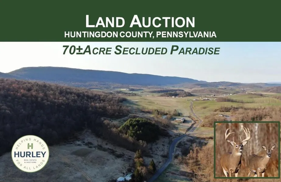 HUNTERS DREAM PROPERTY! 70 ACRES BORDERING TUSCARORA STATE FOREST OFFERING THOUSANDS OF ACRES OF HUNTING AND RECREATIONAL OPPORTUNITIES! A large open field makes for a great opportunity for a food plot! The home features 3 bedrooms, 1 bathroom, living room, family room, dining room, kitchen, basement, laundry, and a 2-car detached garage! Close proximity to Raystown Lake, the Juniata River, and the golf course! Tons of potential with this beautiful property! Property is in Clean & Green. This property will be offered at auction on Friday, April 19, 2024 at 3:00PM.