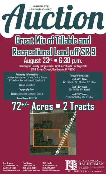 Legal Description Part of the South 1/2 of the Northwest 1/4 of Section 5, Township 27 North (Lancaster Township), Range 9 East, Huntington County, IN, containing 71.998 +/- acres