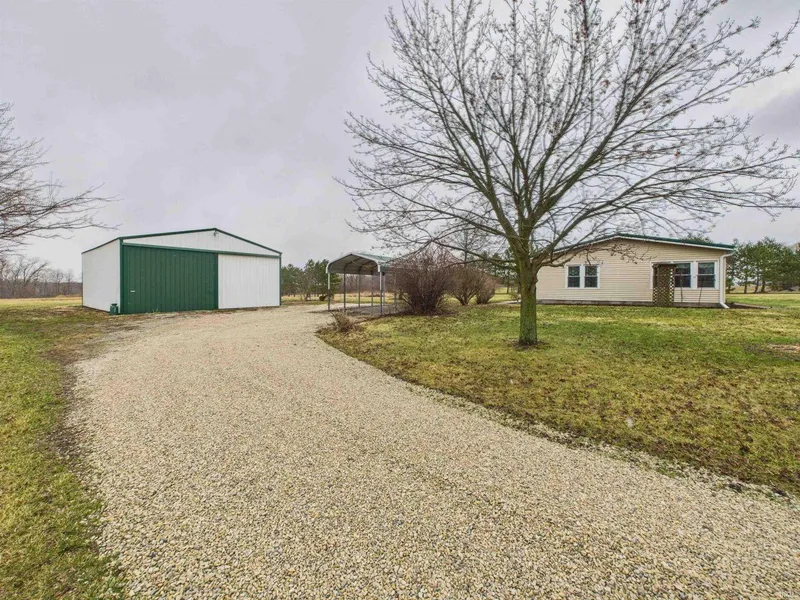 This is an incredible home, over 1840sq ft. that sits on 8.77 acres. Enjoy the privacy and beauty of all this land and a huge Pole Barn/Shop for all your toys. All new widows. New Heating and central air. New metal Roof and all but 2 rooms have new flooring or carpet. New water softener, disposal, even toilets and shower. This home is move in ready and in the perfect location, not too far or too close to town, Just Right!