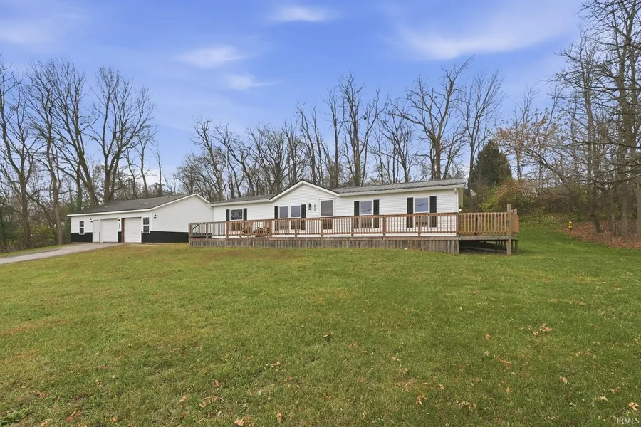 Start Showing Date: 12/1/2025 This charming and tastefully updated 3 bed, 2 bath manufactured home is clean, refreshed, and ready for its new owners! The exterior of both the home and the garage have been professionally power washed, and inside you will find fresh paint throughout, new laminate flooring, and an updated kitchen with all appliances including the washer and dryer remaining with the home. The split bedroom floor plan offers great privacy, with the spacious primary suite featuring a walk in closet and an ensuite bathroom complete with a soaking tub, double sink vanity, and a stand up shower. Sliding patio doors at the back of the home overlook the backyard and bring in great natural light. A standout feature is the massive 40 foot garage, offering an open, well lit workspace with excellent lighting, plus front and rear overhead doors for easy access. The home also includes a newer metal roof and a welcoming wrap around porch. Located directly on US 24, the property allows for quick commutes to Fort Wayne, Whitley County, or downtown Roanoke. This home offers immediate possession. Move in and make it yours today!