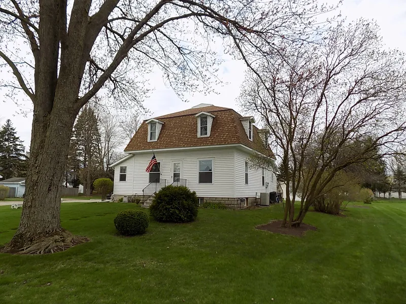 Spacious 3 bdrm home on double lot in town. Hardwood flooring in the living room, dining room, kitchen and office. Nice former dining room, breezeway and first floor laundry/full bath. There is an office on the first floor with a half bath that could be used as a 4th bdrm (no closet). Upstairs features 3 bdrms, a half bath and lots of storage space. Full basement with cellar room and storage room with side entrance. Updates include roof 2011, furnace and AC 2008, new electric hot water heater 2017 and windows replaced in 2011 and 2016. Large double lot with garden, patio and storage shed. Nice family home in move in condition.