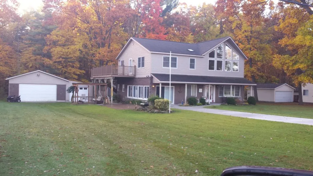 Have a growing family or just looking for a LAKE ACCESS home walking distance to a sandy beach? This spacious 5 bedroom 3 bath home was remodeled 11 years ago from just about the ground up and is ready for a new family. Once inside this grand home you will notice the spacious living room that boosts a 25' vaulted ceiling and gorgeous cultured stone fireplace. Just off the living room the homes eat-kitchen offers oak cabinets, snack bar and opens into a family room with door wall to the front and back yard. Three of the homes five bedrooms are located on the lower level that also includes a full bath and allows you to entertain many friends and family members. The homes grand staircase leads you to the second level where you will find a spacious landing area that offers a slider out to a beautiful wrap-around Trex deck with views of the back yard and Lake Huron! Two additional bedrooms are located on the second level including the master suite offering lake views and a full bath. From the second level deck you can access the back yard that offers a wooded setting and leads you around to the stamped concrete side yard patio. Detached garage is large enough to store all your toys and 12'x30' lean adds extra storage space or could possibly be turn into a work shop. Don't forget this home is walking distance to two sandy beach easements that offer stunning sunsets!