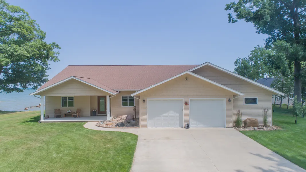 Absolutely STUNNING, simply GORGEOUS...best describes this "one of a kind" lakefront property! You will be totally amazed at the detail that has gone into the building of this home on 233' of Lake Huron Frontage. Built in 2017, this 3 bedroom, 2.5 bath has it ALL...you will absolutely love the open floor plan and a view of the lake from most rooms. Just a few of the details inside include, custom built Hickory cabinetry, quartz counter tops, electric blinds, heated towel bars, an oversized pantry, large laundry room, motion sensor light switches and so much more! Outside is where you find the covered front porch that stretches the entire length of the house, a full house generator, an irrigation system, a whole house surge protector, leaf filter gutters, fruit trees and 2 fire pits. You will appreciate the attached, heated 2.5 car garage with a work shop, the dry, insulated 4' cement cra...