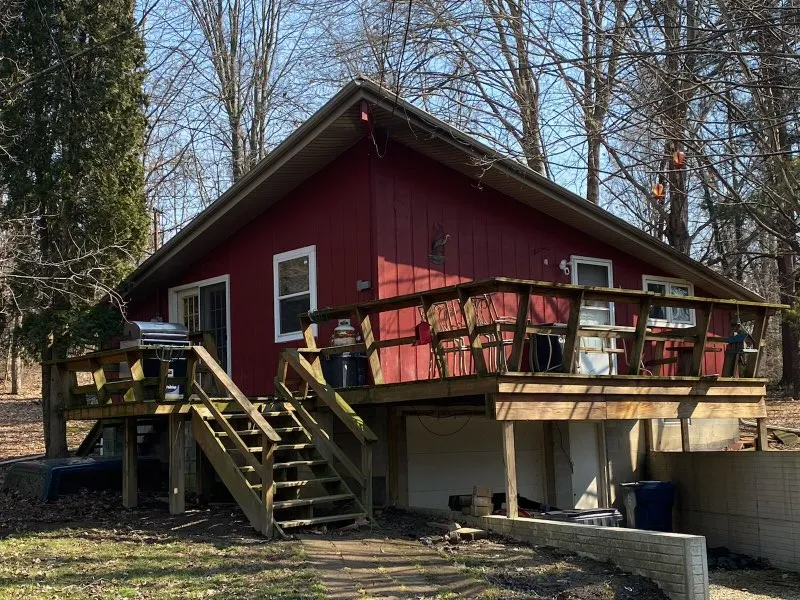 Welcome to Holiday Lakes! This unique property is nestled in the woods on a cozy cul-de-sac. Convenient one floor living with a one car attached garage and a partial basement! The partial wrap around porch leads you inside to the large living room with raised ceilings, which opens to the galley style kitchen. Both bedrooms are on the main floor as well with a full bathroom rounding off first level. Downstairs is a bonus room.