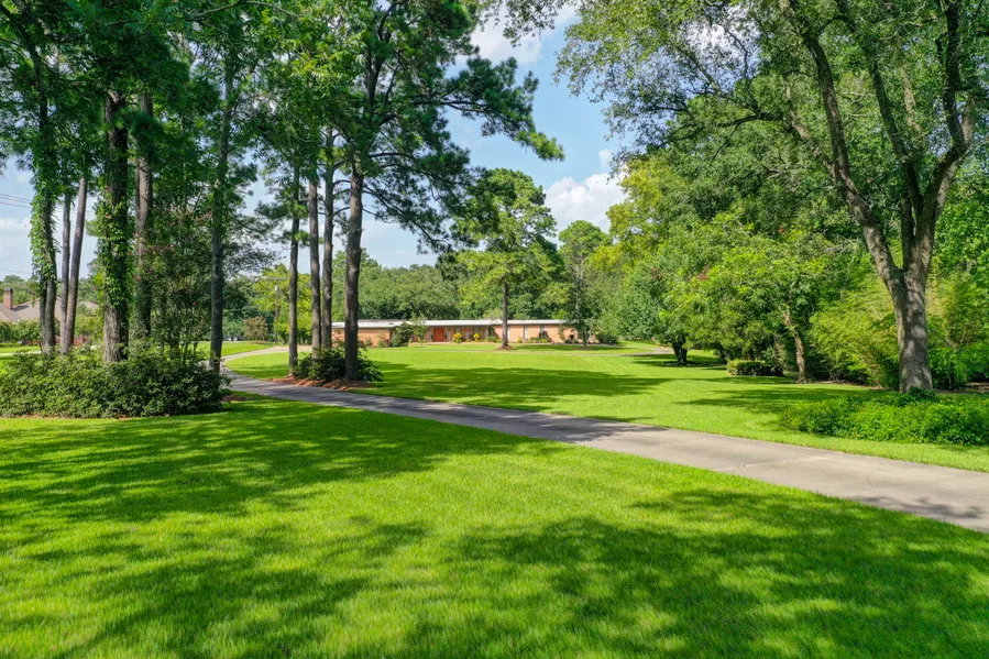 Throughout the house there are great views of the sweeping lawns, gardens, and the understated pool area. The house is on a slight rise centrally set on 4 acres above the beautifully manicured Bayou . with views as well of the nicely done city playground area across the Bayou from 665.