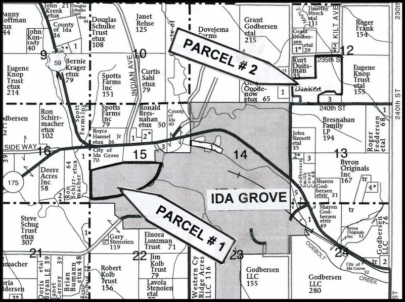 PARCEL # 1 is located just Southwest of Godbersen-Smith Construction Site (Exit onto Jasper Ave., and there is a permanent easement to access this Parcel. PARCEL # 2 is located at the Intersection of Keystone Ave. & 240th Street. (Parcel adjoins Ida Grove Cemetery to the North AND West)