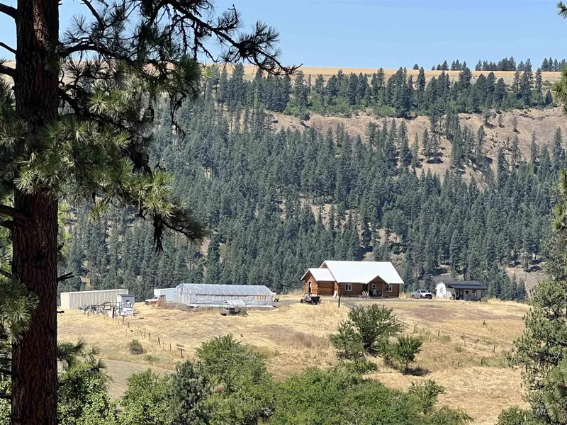 BEAUTIFUL SINGLE LEVEL CEDAR LOG CABIN WITH SPECTACULAR VIEWS ON JUST OVER 24 ACRES! This 3 bed/2 bath log home was constructed in 2024 with 8X8 Cedar logs!! Enjoy the spacious interiors, cathedral ceilings, and an open floor plan. Second dwelling includes a 288sf self-contained tiny home with a separate septic. Tiny home rented month to month or as an Airbnb. This country retreat with mountain views sleeps 4 with a full-size bath. Great income property! Other features include 24x22 cedar logs to complete the garage, valued at $38k. Blue Pine tongue & groove on ceiling, backup Generac 27k generator, and a new 24x48 1200sf greenhouse/High Tunnel. Natural spring, river views, ample deer, turkeys, elk, quail, and pheasant. Clearwater River is an 8-minute drive. Many Rivers, National Forest, and State Ground are near. Hunting, world-class fishing, rafting, boating, berry & mushroom picking at your fingertips. Just 25 min to Grangeville.