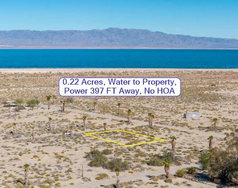 No HOA, 75 x 115 single family residential lot with water to the property and power 2 poles away, approximately 397 ft, at the secluded north end of the Vista Del Mar subdivision overlooking the beach and Salton Sea with hiking trails from the property to get to the water! Septic is required throughout Vista Del Mar. This property is not in a flood zone and is 2.5 miles to Highway 86 for easy commuting to Indio and Coachella 30 miles away.