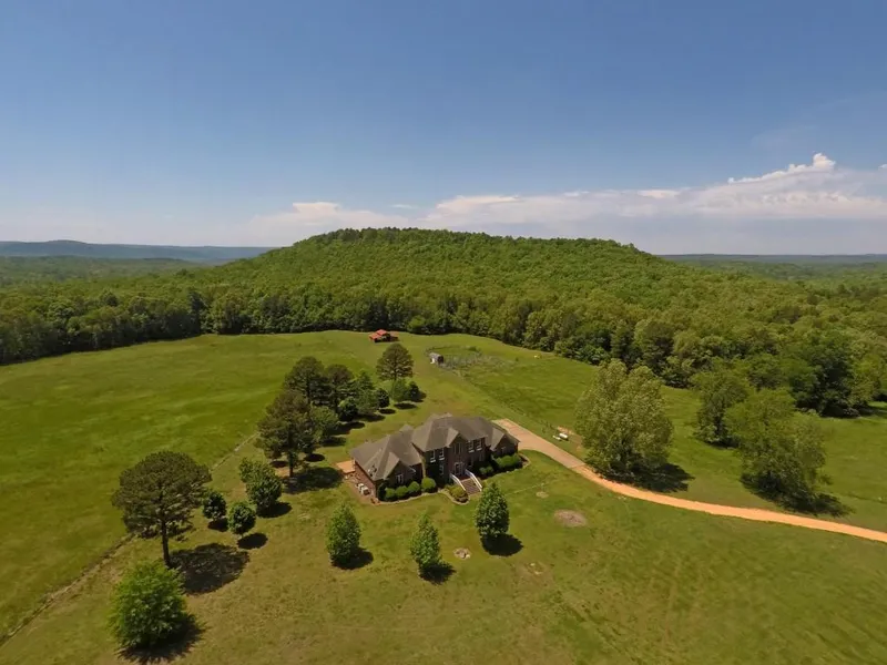Exquisite Victorian Style Home on 240 acres nestled in the hills of the Ozark Mountains! This ''Forever Home'' was built by one of the finest builders in the area, JB Henley, & showcases an attention to detail in everything from the woodwork to the brilliantly laid out floor plan. The 3,974 sq. ft., 5 bed, 4.5 bath, all brick house sits perched atop a hill overlooking the estate. Inside it boasts 2 large living areas, a 20+ ft. tall foyer w/ custom wood staircase, a kitchen w/ custom cabinets, spacious bedrooms and a luxurious master suite w/ a bathroom straight out of a magazine! Outside you'll find almost 60 acres of pristine Bermuda hay fields surrounded by hardwood forest, a newer horse barn, spring fed creek and riding trails throughout the farm! Come experience this special property.