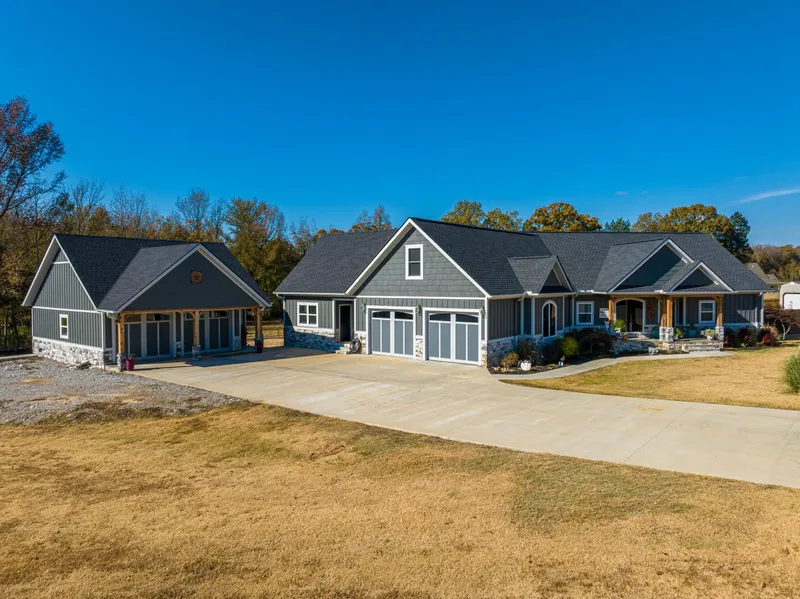 Look at this gorgeous home, nestled at the end of this cul-de-sac in Northpark Subdivision; this home was custom built in 2020, with about 4,949 sq ft under the roof; this home is a must-see! The curb appeal on this home is amazing, the front porch is adorable, the heated and cooled with a mini split, and the shop is about 900 sq ft +/- sitting to the side of the house, which also has a half bathroom in it and could easily be converted into a cute inlaw/guest house. The shop is currently being used as a shop, and it does have 2 rollup, automatic doors. Off from this, you have the large backyard and the nice covered back porch area where you can sit and enjoy that nice Ozark morning and evening! When you enter this home, you will see a nice vaulted ceiling, sliding glass doors leading out back to the covered back porch, a gas log fireplace with stacked rock, custom farm-style doors on...