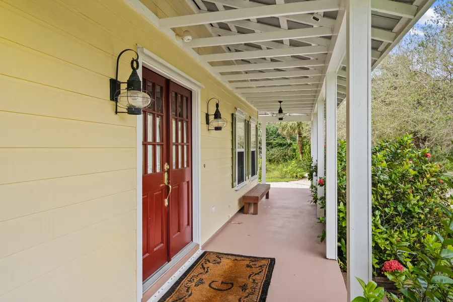 Incredible country home in a secluded location at the south end of the county, where you will see and hear nothing! If peace and quiet is what you seek, this is it! Custom built 4300-plus square feet on 4.5 fenced acres with amazing wrap around porch, 1st and 2nd floor master bedroom suites, soaring ceilings, dramatic stone woodburning fireplace, pine floors, private screened pool with spa (currently unheated), detached garage/workshop. Impact glass on upper level, one AC is 2022. Bring the horses and your love of clean living and country air, this is a unique opportunity! Solar powered! Multiple fruit trees on property.