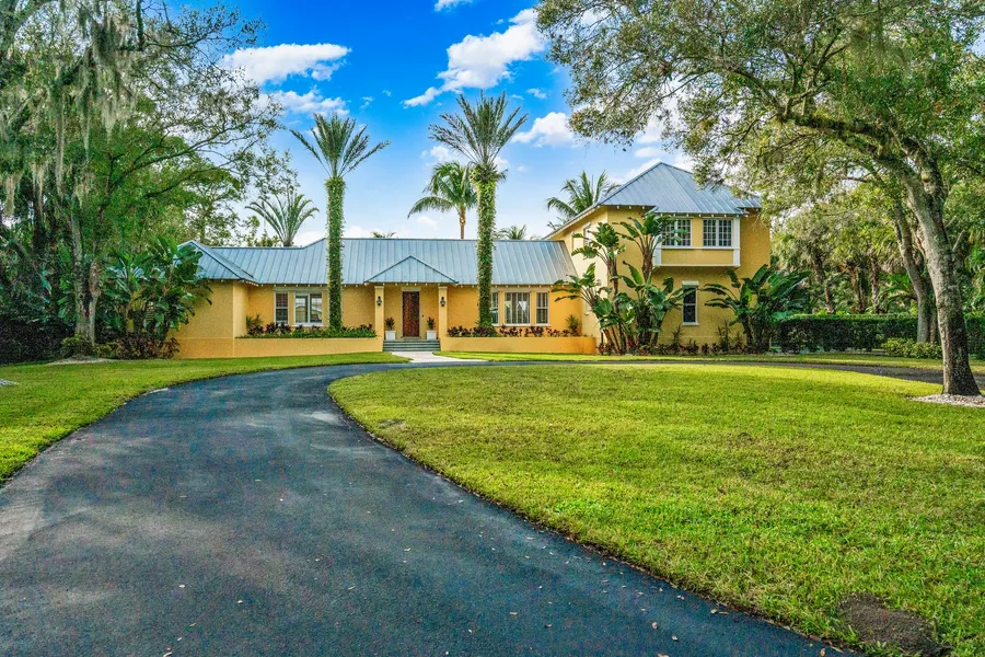 On 2.35-plus acres of meticulously manicured grounds, this French-Caribbean gated compound boasts 4 total buildings and one of the largest pools in Vero Beach with expansive patio and pavilion with summer kitchen for entertaining. Designed by renowned architect Peter Moor, the main house featuring 4 bedrooms, including the downstairs master, 4.1 baths, and 2-car garage. The separate guest house features 2 bedrooms and 2-baths with living, kitchen, and dining. The flex-use building is equipped with a gym/office/studio plus barn with RV/boat parking. The home and grounds reflect a feeling of old Florida living that can't be matched.