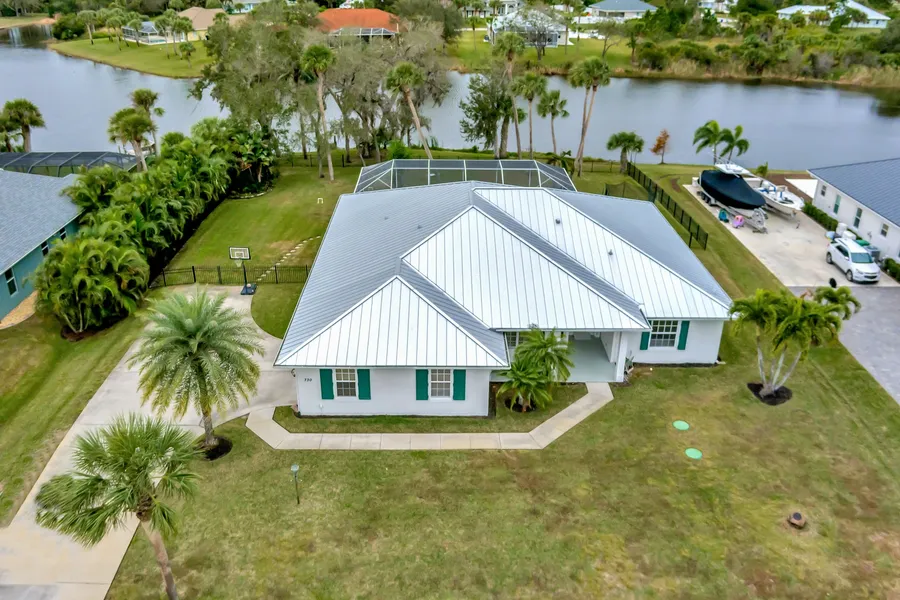 Located on a .5-plus acre waterfront lot in Collier Estates, this 2,855-plus square foot home features 4 bedrooms, 3 baths, and a 2-car side-load garage. The open concept floor plan offers tile and luxury vinyl floors, crown molding, large island kitchen with granite counters, stainless steel appliances, and breakfast nook. Relax and unwind by the screened waterfront pool or play in the fenced yard. Close to beaches and shopping.