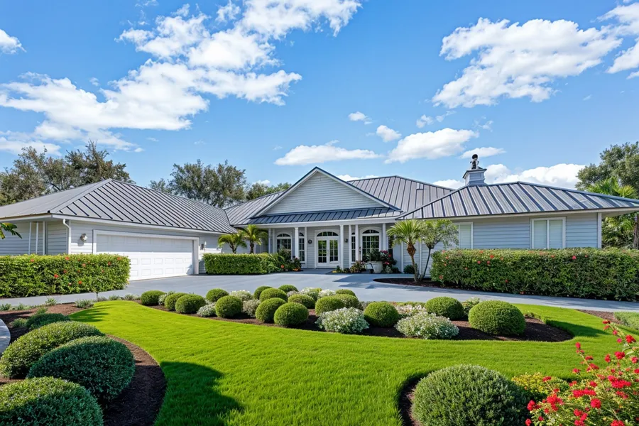 Concrete block stucco 3 bedroom plus office, could be 4th bedroom, on very private .57-acre lakefront lot with long water views and beautiful sunrises. Features include 2024 metal roof, impact doors and shutters, high ceilings, freshly painted, updated bathrooms and kitchen, newer wood flooring, fireplace, resurfaced dolphin pool, gas cooktop, this is a must see.
