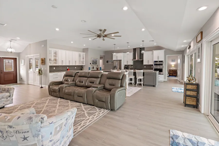 Experience the ultimate riverfront lifestyle in this meticulously completely renovated Vero Beach gem. This stunning home boasts a new roof, impact glass throughout, and a whole-house generator, ensuring peace of mind. An open floor plan, gourmet island kitchen, featuring gas cooking and a wall oven, and extends to the spacious living area, perfect for entertaining. This home features 2 primary suites, a dedicated office, and a private dock with a lift offering direct access to the Indian River. Walking distance to shops, restaurants, and beach.