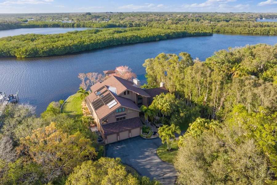 The perfect combination of luxury, versatility, and Old Florida charm. This property sits on 3.18 acres with 143-feet of water frontage and includes 3 separate residences, ideal for a family compound, corporate retreat, or income-producing rental. The main house features a 3-car garage, screened pool, 4 bedrooms, 4 baths and office, while the second home offers 1477-plus square feet, 2 bedrooms, 2 baths, pool, and 2-car garage. Plus 1 bedroom, 1 bath cottage. The estate is surrounded by lush gardens, private entrance, and plenty of space for RV/boat parking. Direct access to the Sebastian River/Intracoastal. Boathouse with 2 lifts and seawall.