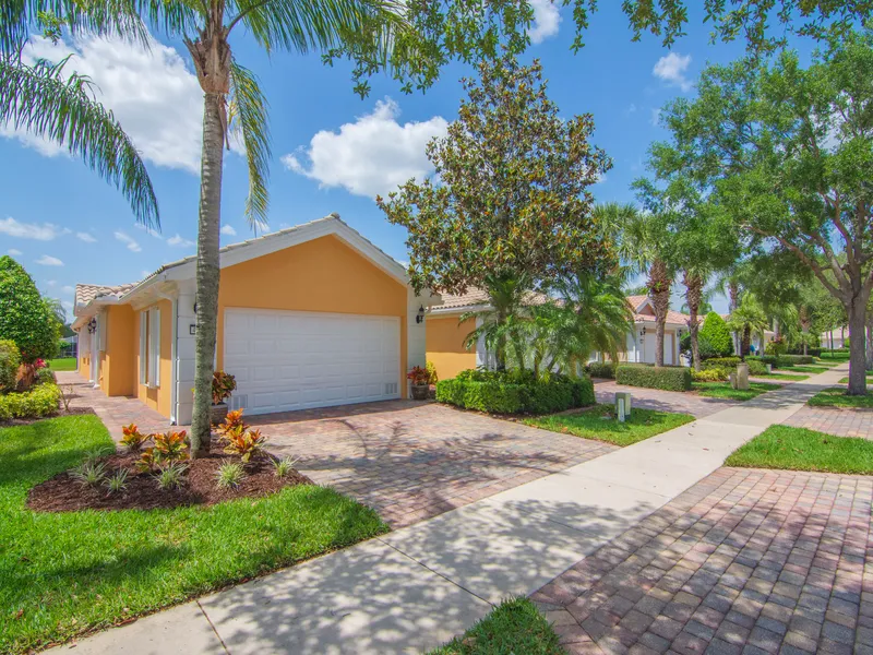 Few have the opportunity to own the expanded Capri! 10 Minutes to beach! Set on a tree lined street on a lakefront lot, this pristine home with 40-year tile roof has cathedral ceilings, over 1700 square feet of tiled living space, 2 bedrooms, living room, family room, 2 baths, large laundry/storage, very private 28x17 screened porch with sunscreen roof. This model has the famous "safe room" in the master bedroom walk in closet with steel locking door, accordion and plantation shutters, epoxy gar floor, 2022 AC, 2020 hot water heater. Gated community is not in a flood zone, fabulous clubhouse, pool, fitness center, and social calendar. HOA includes lawn, cable, and internet. Furnished available, please ask.