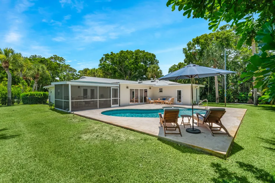 Remodeled pool home in coveted Vero Beach Country Club! CBS, metal roof, 2021 AC and water heater, impact windows and doors, and new plumbing! Bonus room with a mini split that could be an office, art studio, etc, garage with AC, paver driveway, irrigation with well, and pool heater. Gourmet kitchen is the heart of the home with spectacular views overlooking the lanai and pool, includes large island, quartzite, induction Fulgor stove and custom cabinetry. Multiple living and dining spaces for casual to formal living. Split floor plan for privacy. Screened lanai, travertine deck, and great entertaining space/backyard! Golf cart friendly, minutes to beach!