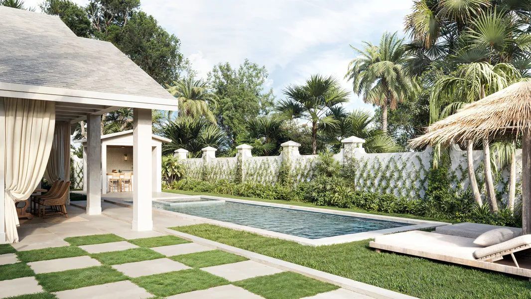 Under construction! Estimated completion January. Resort-style living in this Central Beach stunner! Located in the heart of Vero Beach on a corner lot, this impeccably designed home features 4 bedrooms, 4 baths with 2-car garage plus 1 bedroom, 1 bath guest house with living room and kitchen. Filled with natural light through the impact windows, no detail has been overlooked with vaulted/beamed ceilings, wide-plank wood floors, custom trim, KitchenAid appliances, and spa-like baths. Outside, relax or entertain by the beautifully designed pool with spa, ample covered outdoor living space and summer kitchen.