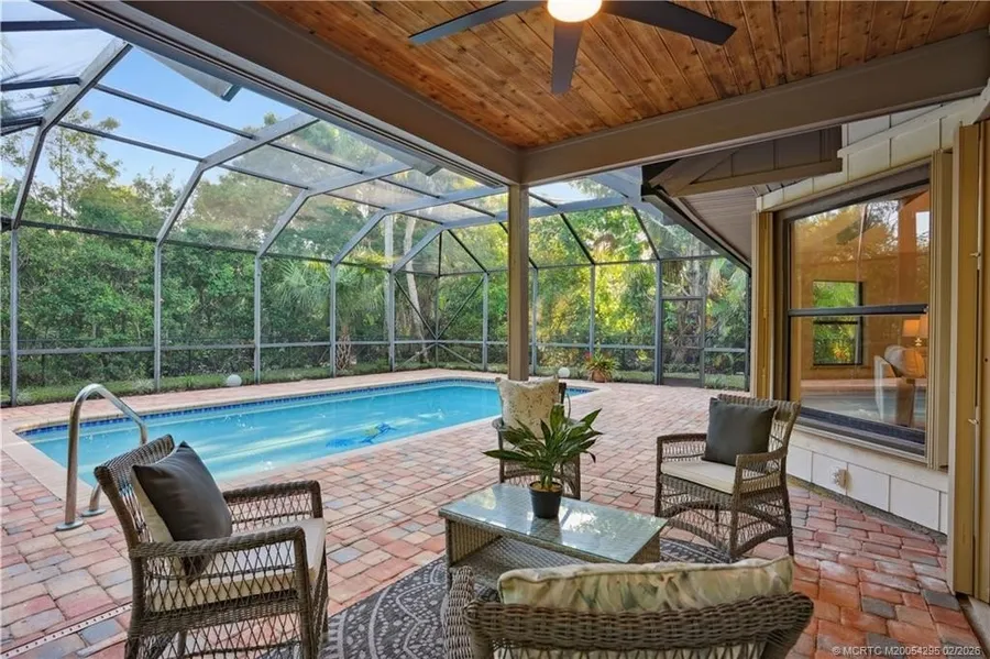 Island living at its finest in Seminole Shores! This three bedroom, two and a half bathroom renovated pool home offers deeded beach and river access, a brand new kitchen, and a spacious family room with cathedral ceilings. Enjoy a screened patio with heated pool, brick paver deck, and lush landscaping. The entire second floor is a private master suite featuring a spa-style bathroom with soaking tub and dual-head Shower, an oversize walk-in closet and a large private balcony. Additional perks include a whole home generator and a prime location on the Island close to Saint Edward's private school.