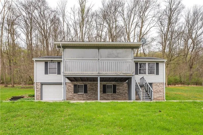 Enjoy nature and nice views from this 3 Bedroom raised ranch on almost 5 acres. On the main level you'll find a spacious living room and eat-in kitchen with pantry and 3 nice sized bedrooms with plenty of closet space. The master bedroom has a full bath and walk-in closet. The basement is huge and has a 3/4 bath with walk-in shower ready to be finished. There is a covered patio off the back with a view of the woods and a covered deck on the front. This home has 1 integral garage and an additional 2 car detached garage with a "barn" above. It's unfinished and ready for the next owner to make it their own. Tons of potential here!